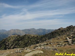 Depuis le refuge jusqu'aux crêtes, le paysage s'élargi avec des vues splendides sur la vallée du riu Valira, puis sur la vallée dominée par le Pic des Agols et la bare rocheuse du Caser dels Pans. Arrivé au sommet des crêtes, c'est la vue sur la vallée du Madriu qui s'offre à nous d'un côté de l'autre la vallée du Valira que nous allons bientôt quitter. Il aura fallu une heure et demi pour arriver aux crêtes depuis le refuge.
