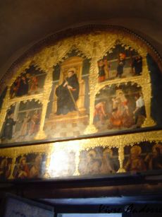 par des ornementations en stuc doré. Dans la predelle
